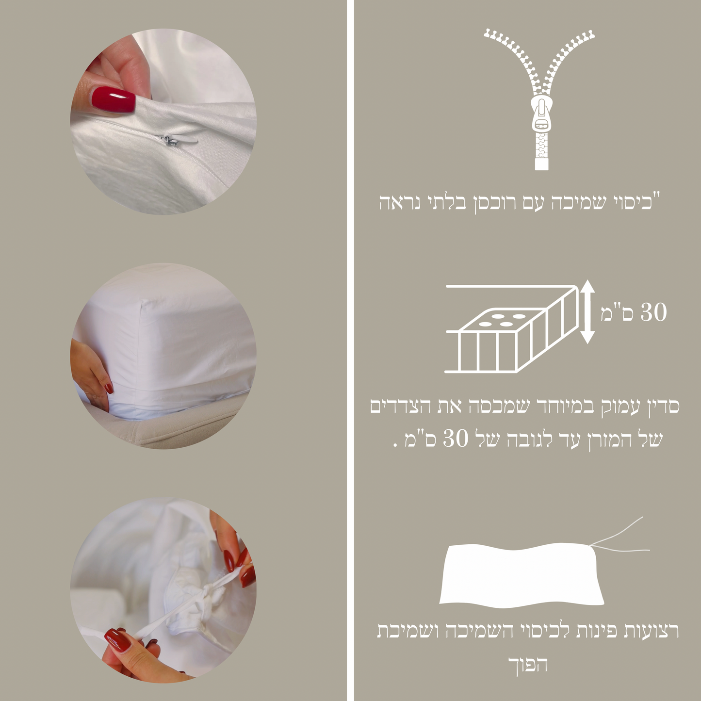 סדין מתוח:מידות: לבחירה בין 180×200×30 ס"מ או 200×200×30 ס"מ